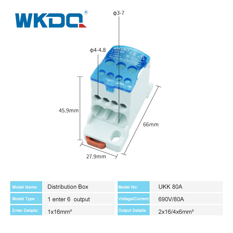 Distributeur de bloc d'alimentation UKK 160A, boîte de distribution de jonction avec couvercle transparent