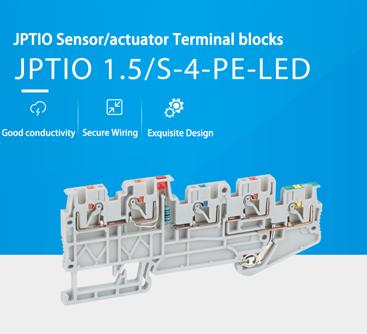 CE/RoHS/CQC/ISO 9001Bornier d'actionneur de capteur JPTIO1.5/S/4-PE-LED (24 V)La technologie de connexion directe Push-in réduit les forces d'insertion jusqu'à 50 % et le câblage sans outil permet d'insérer les conducteurs facilement et directement.Fabriqués à partir de nyl......