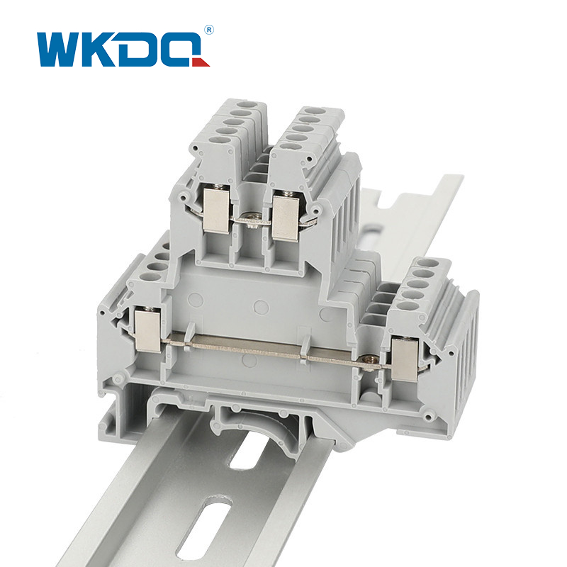 Conception à double niveau : les borniers à double niveau offrent deux fois la densité des blocs de traversée. Ceci est particulièrement bénéfique lorsque l’espace est limité, permettant une répartition efficace des potentiels. La conception à plusieurs niveaux simplifie le câblage et contribue à une installation plus organisée et compacte.