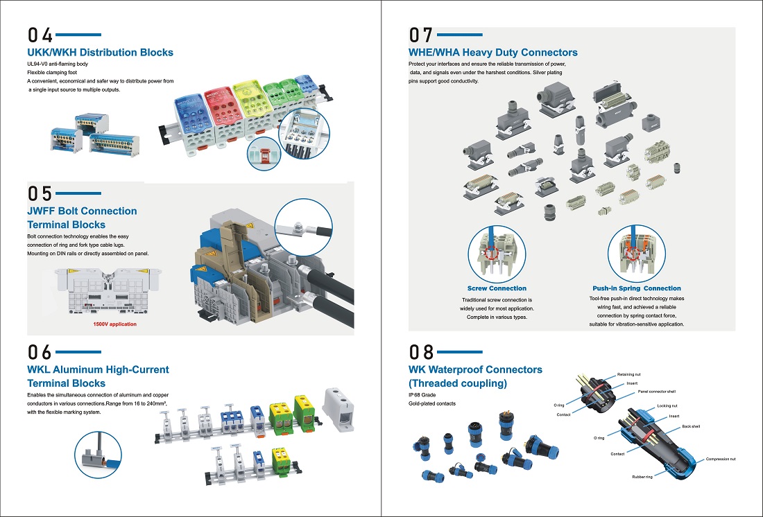 Sur le stand A14, WKDQ présentera huit séries de produits de borniers, notamment JUK, JUT, JPT, JPTV, JST, JPTFIX, JPTIO et UKK. Ces produits répondent à des scénarios tels que le contrôle industriel, les appareils intelligents et les nouvelles énergies. Avec des fonctionnalités telles qu'une fiabilité élevée, une résilience environnementale et une adaptabilité flexible, nous proposons des solutions de connexion électrique de bout en bout pour les clients internationaux.