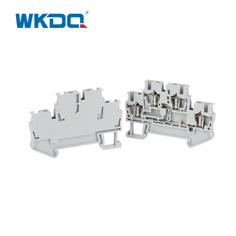Le bornier à ressort multicouche est en PA66 ignifuge et en laiton nickelé. Il présente une conception d'intégration potentielle unique à double couche, permettant à une seule coque d'accueillir plusieurs circuits et d'économiser trois fois l'espace de câblage. L'opération de sertissage sans outil, combinée à une structure étanche anti-desserrage et dégazage, et à des points de contact résistants à la corrosion garantissent une alimentation électrique stable à long terme. L'installation universelle sur rail DIN avant de 35 mm et la zone d'identification plate simplifient la gestion. Il est compatible avec les couvercles d'extrémité, les ponts enfichables et autres accessoires, répondant aux exigences de distribution d'énergie haute densité des scénarios compacts.
